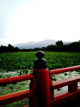 蓮の池の真ん中に赤い橋とかすごい、良いんですけど。